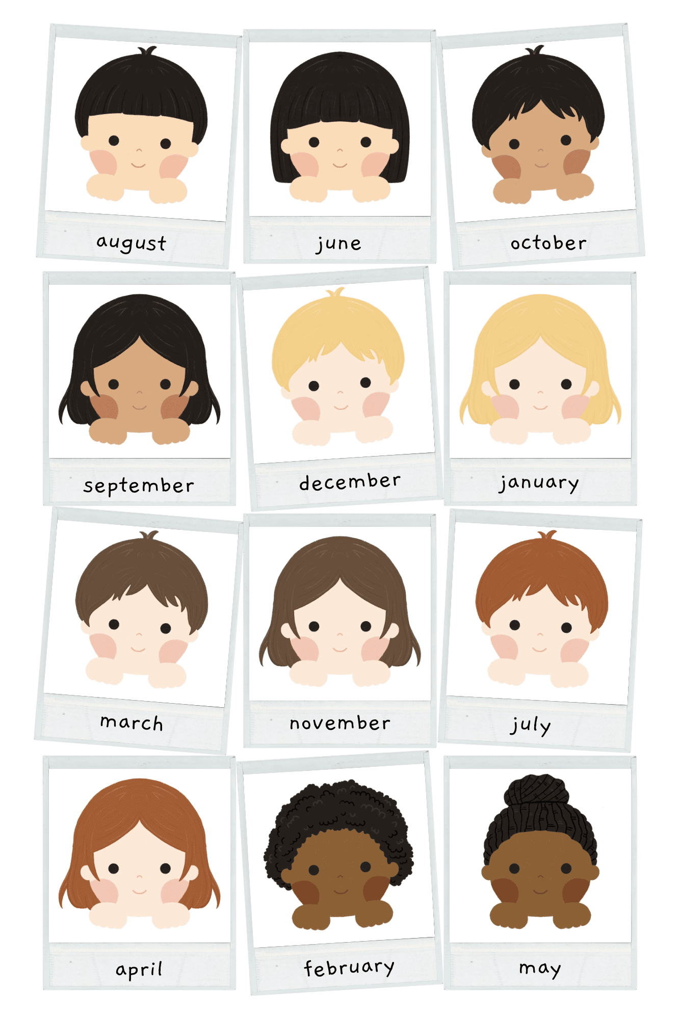 Every sheet features 12 lovingly illustrated toddler characters, offering little reflections of your children (or your inner child) among the collection.